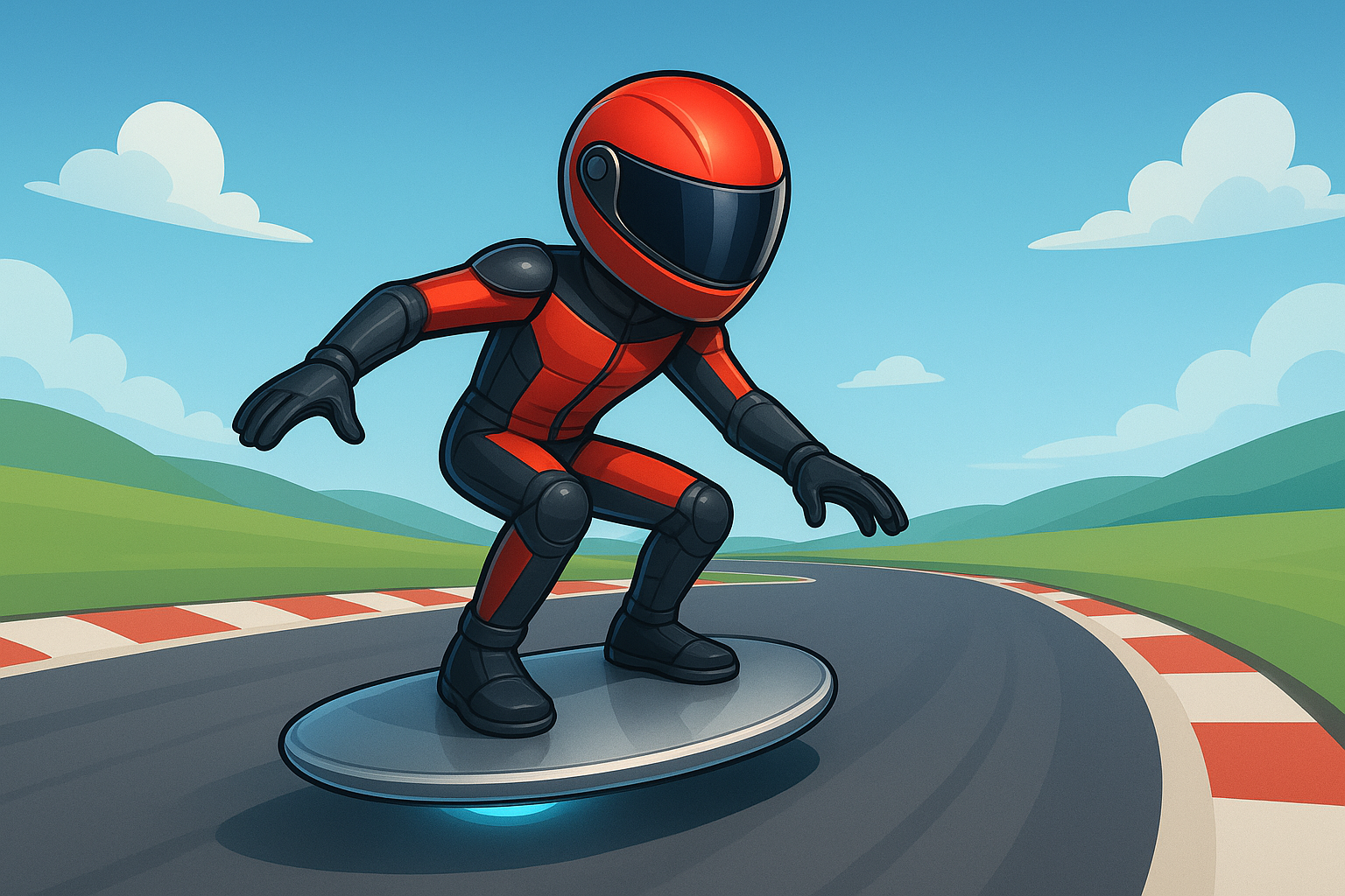 The hoverboard is fully physics-driven, so movement, balance, and height control directly affect your speed and performance.